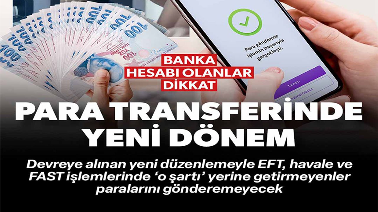Milyonlarca banka müşterisini yakından ilgilendiren kritik uyarı geldi. Yeni yılla birlikte para transferi alışkanlıkları kökten değişiyor. Hazine ve Maliye Bakanlığı'nın devreye aldığı yeni düzenlemeye göre, 1 Ocak sabahından itibaren EFT, Havale ve FAST işlemlerinde 'o şartı' yerine getirmeyenler paralarını gönderemeyecek. Peki, kimler bu kapsama giriyor ve belirlenen o kritik limit ne kadar? İşte para transferlerinde başlayacak yeni dönemin ayrıntıları...Milyonlarca banka müşterisini yakından ilgilendiren kritik uyarı geldi. Yeni yılla birlikte para transferi alışkanlıkları kökten değişiyor. Hazine ve Maliye Bakanlığı'nın devreye aldığı yeni düzenlemeye göre, 1 Ocak sabahından itibaren EFT, Havale ve FAST işlemlerinde 'o şartı' yerine getirmeyenler paralarını gönderemeyecek. Peki, kimler bu kapsama giriyor ve belirlenen o kritik limit ne kadar? İşte para transferlerinde başlayacak yeni dönemin ayrıntıları. Bankacılık işlemlerinde ezber bozan düzenleme için geri sayım başladı. Hazine ve Maliye Bakanlığı ile MASAK düğmeye bastı. Mobil, internet veya ATM fark etmeksizin yapılacak para transferlerinde (EFT, Havale, FAST) artık "ek bilgi" zorunluluğu geliyor. 200 bin TL üzerindeki işlemlerde 20 karakterlik açıklama girmeyen parasını gönderemeyecek.