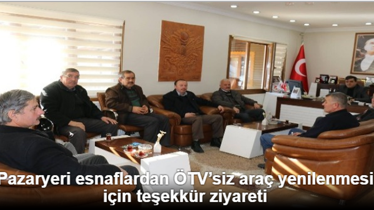 Bilecik’in Pazaryeri Çınar Taksi esnafı, ÖTV’siz araç yenilenmesi için Pazaryeri Belde Belediye Başkanı Muzaffer Yalçın’a teşekkür ziyareti gerçekleştirdi.