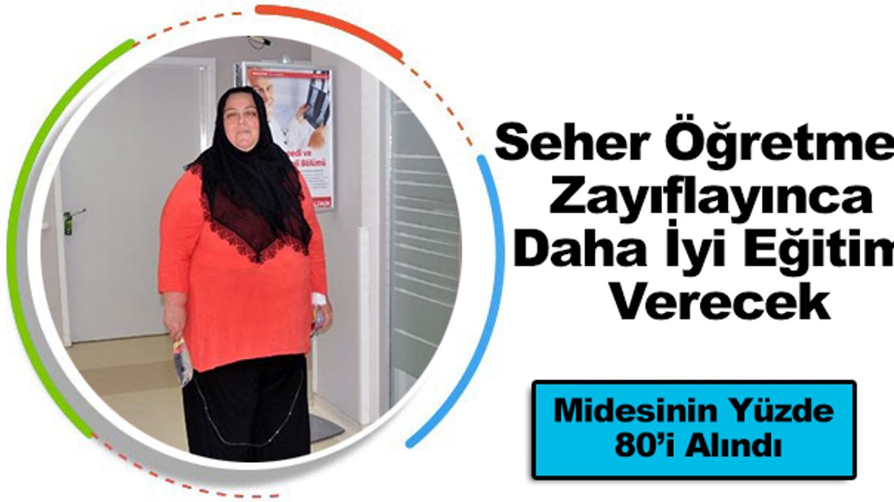 Bilecik’te sözleşmeli olarak görev yapan Din Kültürü ve Ahlak Bilgisi öğretmeni Seher Gültepe (42), fazla kilolarından spor ve diyetle kurtulamayınca midesini küçülttü. Seher öğretmenin midesinin yüzde 80’i, Mersin’in Tarsus ilçesinde Medical Park Hastanesi’nde Genel Cerrahi Uzmanı Op. Dr. Erdal Cücük’ün yaptığı ameliyatla alındı. Seher Gültepe, zayıflayınca daha iyi bir öğretmen olacağına inandığını söyledi.