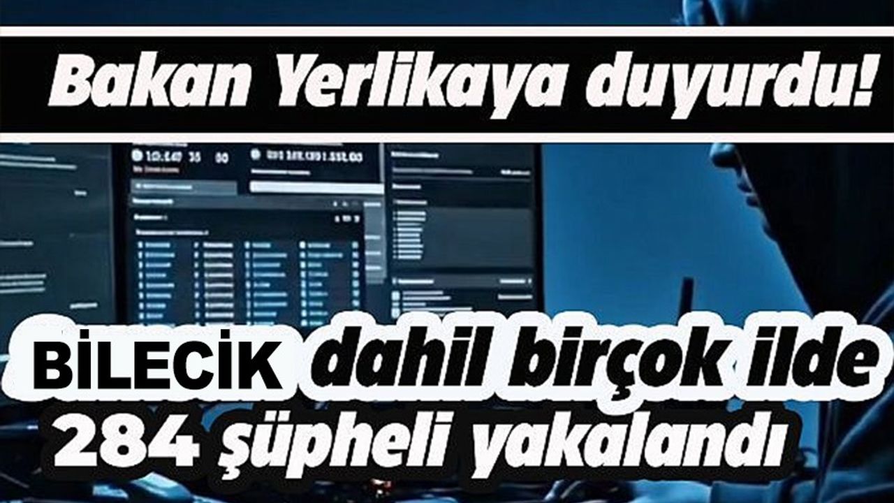 İçişleri Bakanı Ali Yerlikaya, siber suçlarla mücadele kapsamında son 1 haftada aralarında Bilecik’in de olduğu birçok ilde 284 şüphelinin yakalandığını açıkladı.