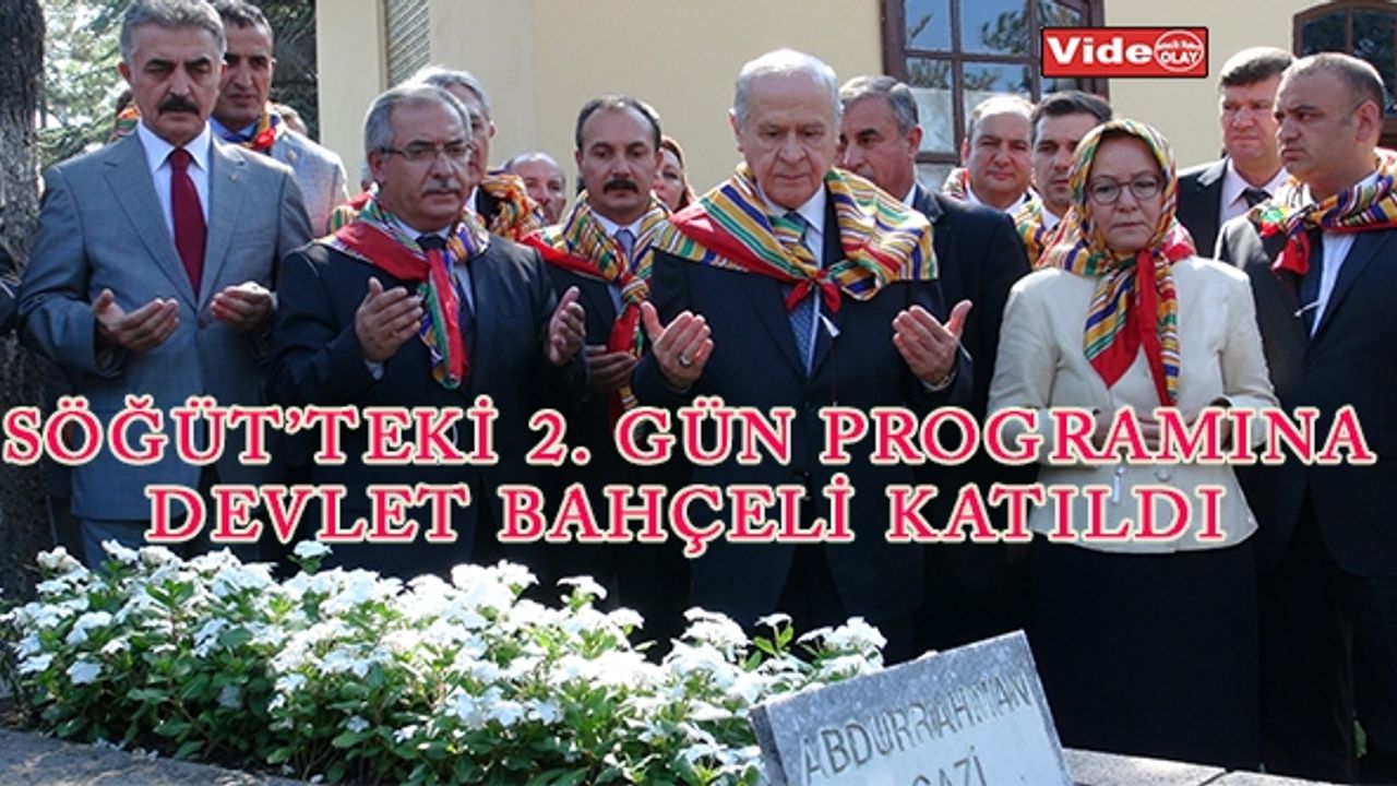 Şenliklerin ikinci gününde MHP Lideri Bahçeli, ilk olarak Söğüt Belediye Başkanı Halil Aydoğdu'yu makamında ziyaret etti. Ziyarette Başkan Aydoğdu, Bahçeli'ye Söğüt hatırası tabak ve el işlemesi dokuma hali hediye etti. Belediyedeki programın ardından Hükümet Konağı'nın önünde Yörükler karşılandı. Burada konuşma yapan Söğüt Belediye Başkanı Halil Aydoğdu, 733 yıldır devam ettirilen Ertuğrul Gazi'yi Anma ve Yörük Şenliklerinin, Türk milletinin birlik ve beraberliği açısından büyük önem arz ettiğini belirterek, "Ülkemizin milli birlik ve beraberliğe en çok ihtiyacı olduğu bugünlerde, buradaki binlerce insan, yüce Türk milletinin birlik ve beraberliği noktasındaki hassasiyetini ortaya koymaktadır.