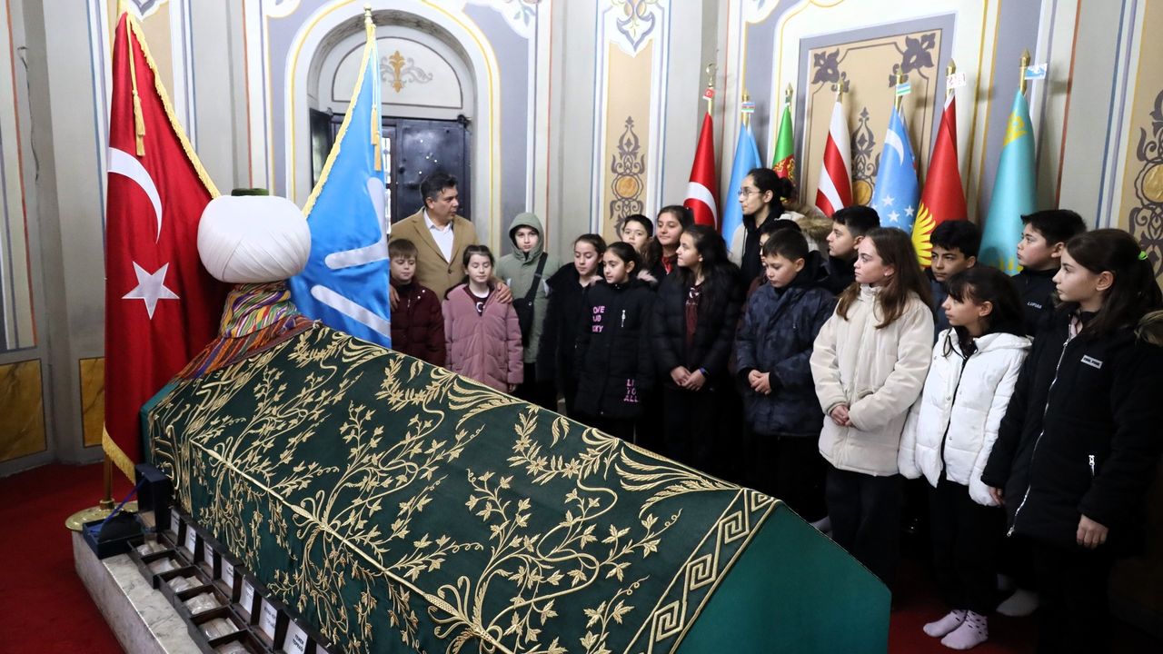 Bilecik'in Söğüt ilçesine gelen öğrencilere Söğüt Belediye Başkanı Ferhat Durgut Ertuğrulgazi Türbesi'nde rehberlik etti.