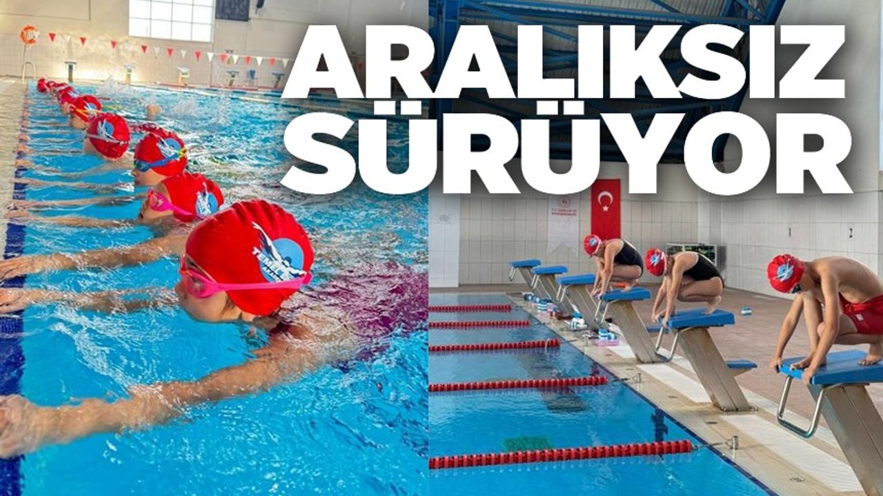 Gençlik ve Spor Bakanlığı Spor Okulları bünyesinde, Bilecik'te Bahçelievler Kapalı Yüzme havuzunda gerçekleştirilen yüzme antrenmanları aralıksız sürüyor.