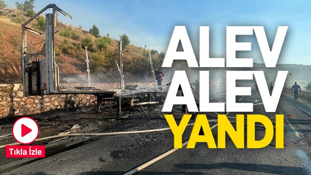 Bilecik'in Osmaneli ilçesinde sunta yüklü tırın dorsesi alev alev yandı.