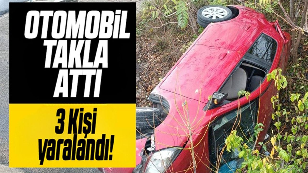Bilecik'te kontrolden çıkan otomobilin takla atarak yan yattığı trafik kazasında 3 kişi yaralandı.