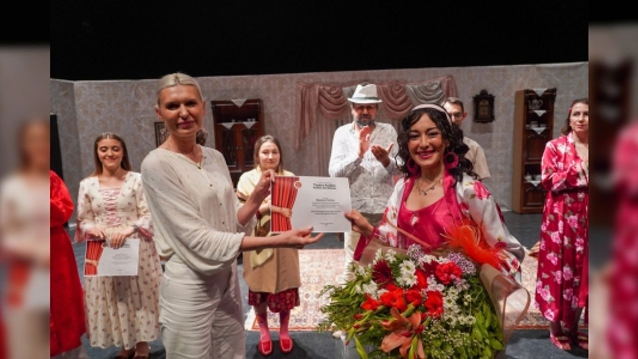 Başkan V. Subaşı konuşması sonrasında Genel Sanat Yönetmeni Onur Algın’a çiçek takdim ederken, sahne alan Celal Masat, Emrah Şengül, Emre Bulut, Serpil İçöz, Damla Akdeniz, Ecrin Işık, Ayşe Yurttaş, Arzuhan Bulut, Bilge Sertcan, Beyzanur Çerkez, Ayşe Sabah, Sedanur Coşkun, Merve Eren’e sertifikalarını verdi.