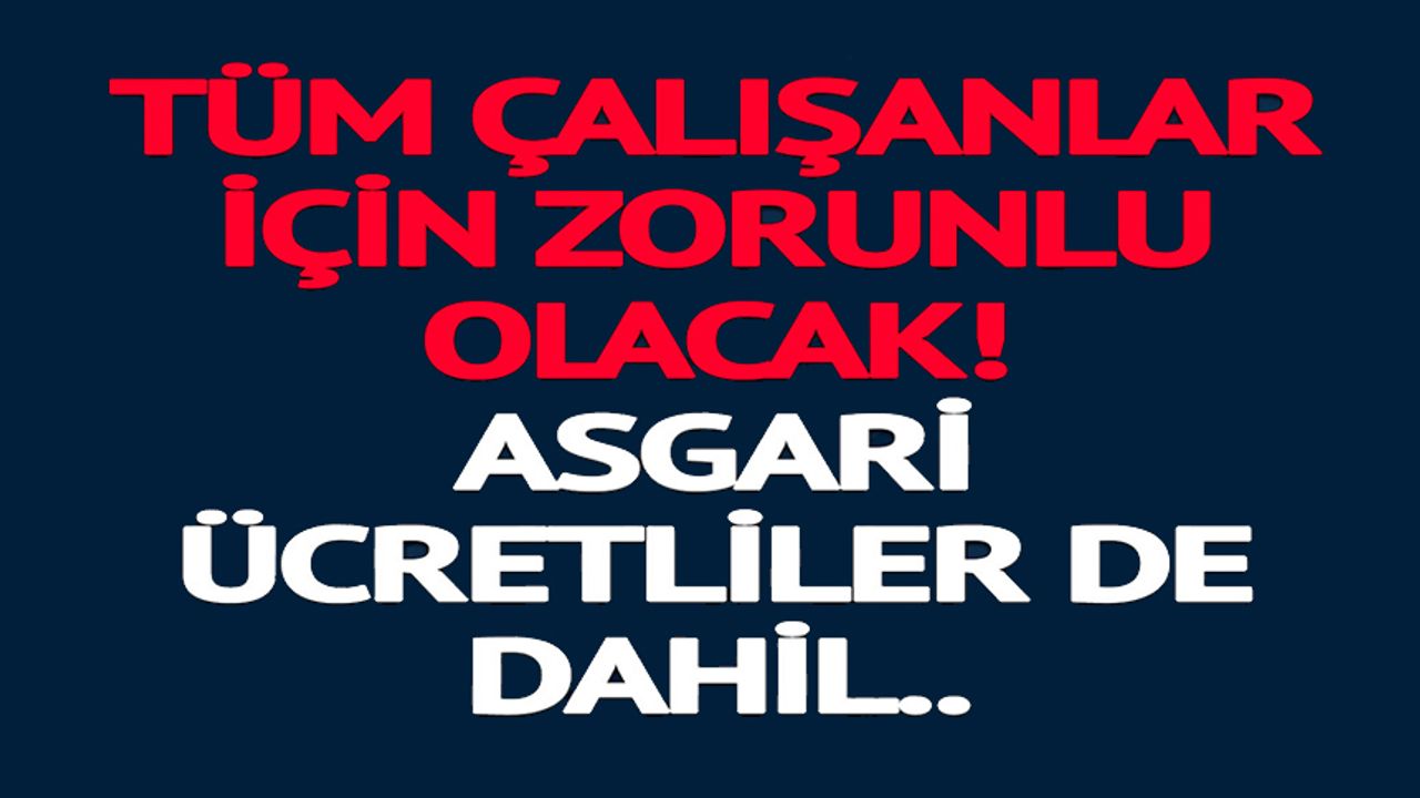 Tüm çalışanlar için zorunlu olacak. Asgari ücret alanlar da dahil!