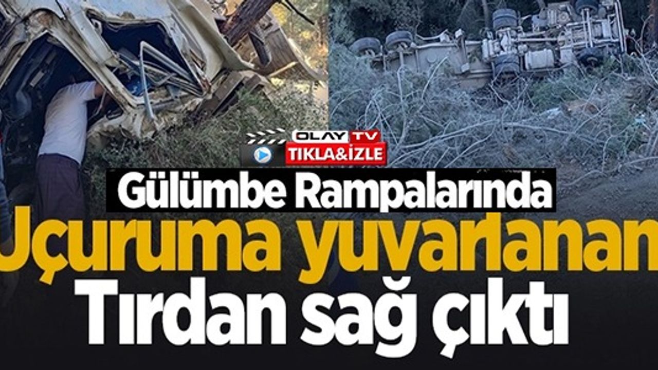Kontrolden çıkan tır yoldan çıkarak 60 metre yükseklikten uçuruma yuvarlandı.