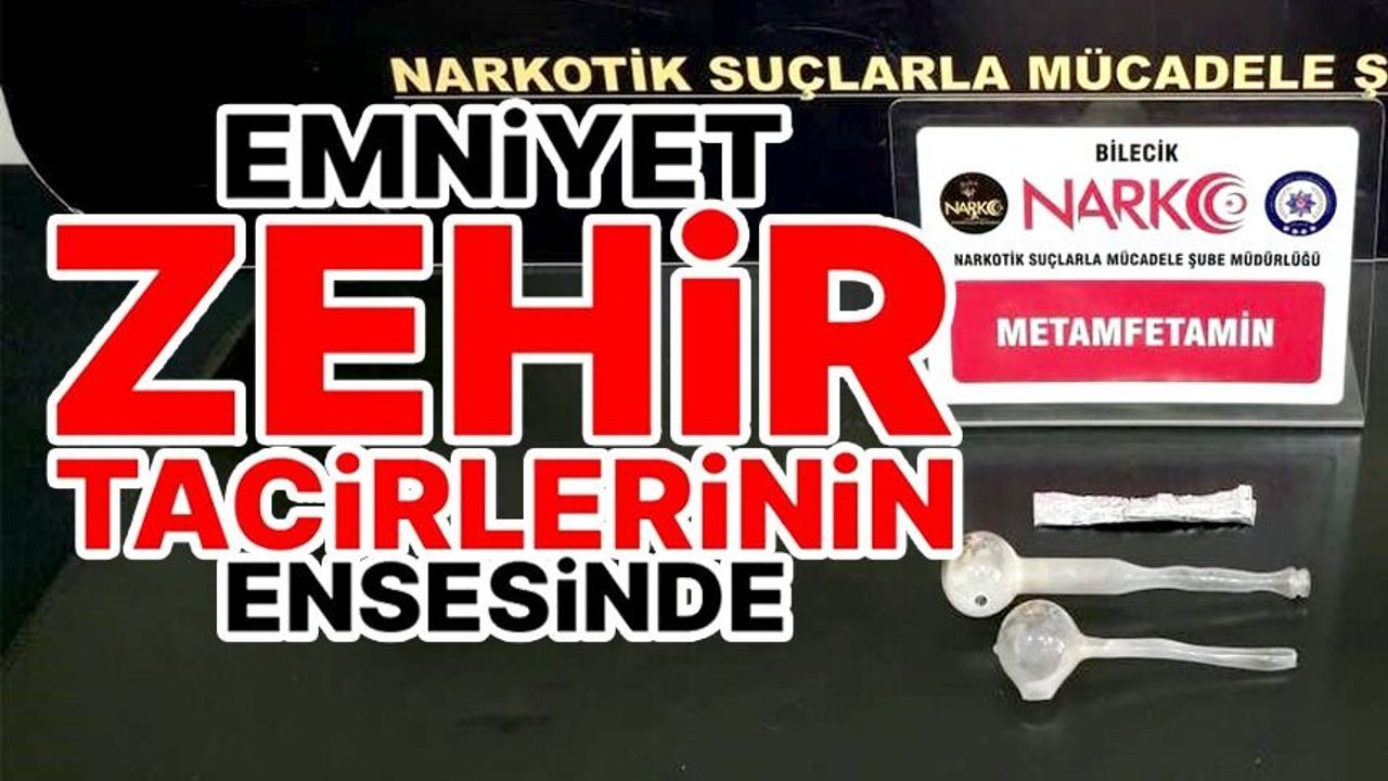 Edinilen bilgilere göre, Bilecik İl Emniyet Müdürlüğü Narkotik Suçlarla Mücadele Şube Müdürlüğü ekipleri tarafından kentte uyuşturucu madde ticareti ve kullanımının önlenmesine yönelik operasyon gerçekleştirildi. Yapılan çalışmalar kapsamında bir şüpheli şahsın üzerinde ve bulunduğu alanda yapılan aramalarda muhtelif miktarda metamfetamin maddesi ile 2 adet bong aparatı ele geçirildi.