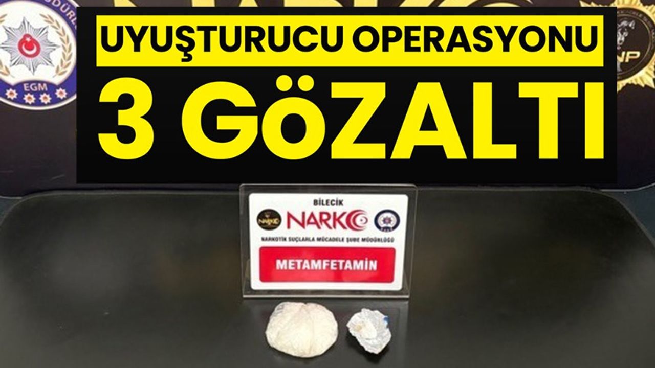 Bilecik’te gerçekleştirilen uyuşturucu operasyonunda 3 şahıs gözaltına alındı.