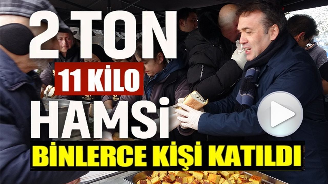 Bilecik'te düzenlenen Gölpark Kış Festivali’ne binlerce kişi soğuk havaya rağmen akın ederken, 2 ton 11 kilogram hamsi dağıtıldı.