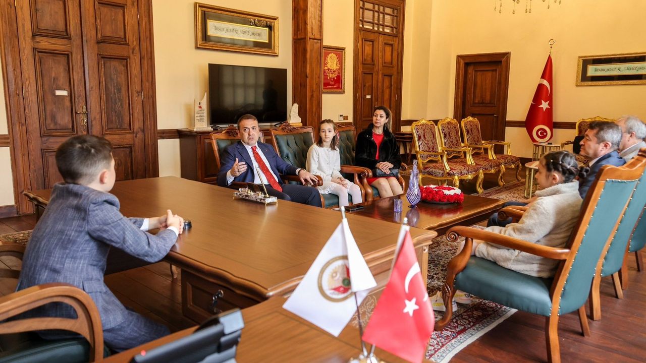 Bilecik Valisi Faik Oktay Sözer, 23 Nisan Ulusal Egemenlik ve Çocuk Bayramı dolayısıyla Atatürk İlkokulu öğrencileri Yiğit Tekelioğlu, Hifa Demir ve Seray Arya Ergül’ü Valilik makamında ağırladı. Ziyaret kapsamında Valilik makamı temsili olarak Yiğit Tekelioğlu’na devredildi. ‘Vali’ koltuğuna oturan minik Yiğit, ilgili birimlerle görüşerek talimatlarını iletti, şehirle ilgili düşüncelerini ve hayallerini paylaştı. Programa Bilecik İl Milli Eğitim Müdürü Serdal Şimşek de katılırken, çocuklarla yakından ilgilenen Vali Sözer, onların neşesi ve enerjisinin kendilerine güç verdiğini ifade etti.