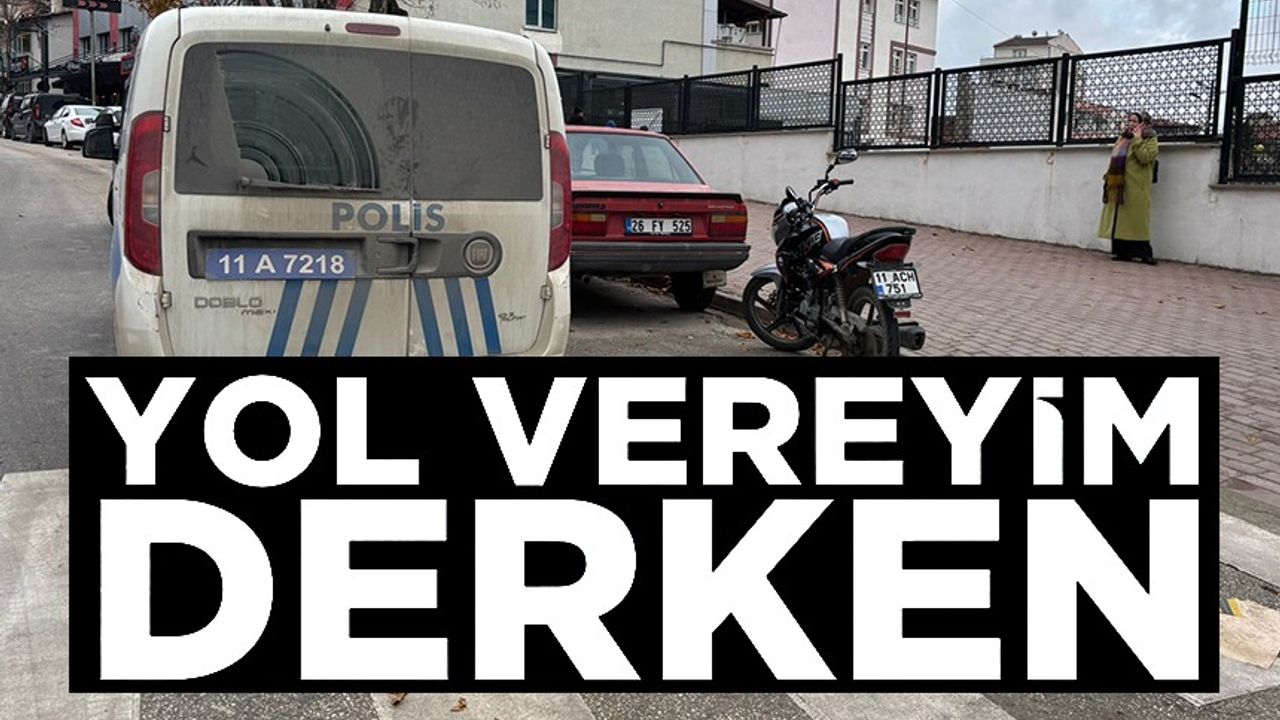 Bilecik'te yaya geçidinden geçmek isteyen bir şahsa yol veren hafifi ticari araca arkasında seyreden motosiklet duramayarak çarptı.